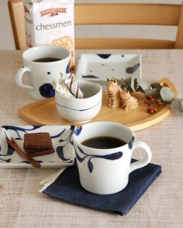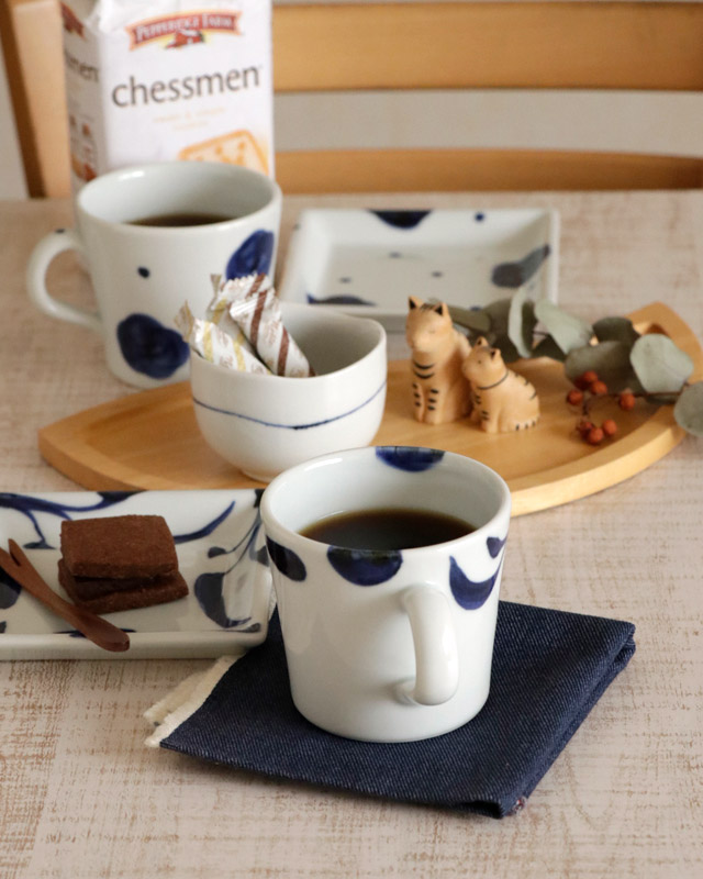 ![]() 白磁に映える藍の染付が素敵なマグカップ。冷たい飲み物からあたたかい飲み物まで普段使いのカップとしてもおすすめ。 ![]() カップの高さは8cmくらい。マグカップらしい安定感あるかたちです。 ![]() 持ち手の幅は1.5cmくらいです。 ![]() 雲石窯さんならではの藍色が印象的。 ![]() 口径は9cmくらい。砥部焼らしく厚手のカップだから、丈夫で気兼ねなく使えるところもうれしい。 なめらかな口あたりです。 ![]() 底の直径は7cmくらい。 ![]() 広がりあるかたちです。 ![]() ほんのり青味掛かったなめらかな白磁に描かれた味わいある絵付け。ぬくもりを感じる手描きらしい筆使いです。 |