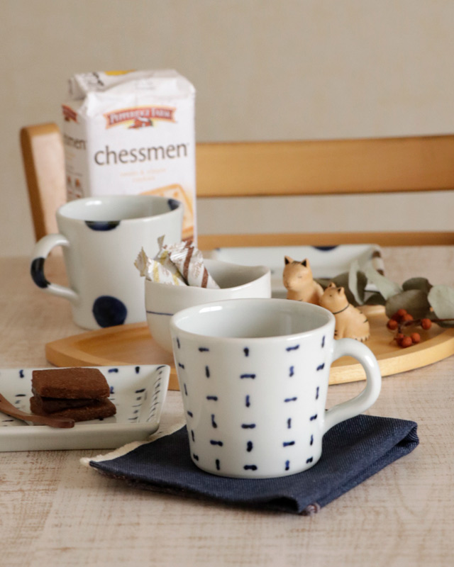 ![]() 白磁に映える藍の染付が素敵なマグカップ。冷たい飲み物からあたたかい飲み物まで普段使いのカップとしてもおすすめ。 ![]() カップの高さは8cmくらい。マグカップらしい安定感あるかたちです。 ![]() 持ち手の幅は1.5cmくらいです。 ![]() 雲石窯さんならではの藍色が印象的。 ![]() 口径は9cmくらい。砥部焼らしく厚手のカップだから、丈夫で気兼ねなく使えるところもうれしい。 なめらかな口あたりです。 ![]() 底の直径は7cmくらい。 ![]() 広がりあるかたちです。 ![]() ほんのり青味掛かったなめらかな白磁に描かれた味わいある絵付け。ぬくもりを感じる手描きらしい筆使いです。 |