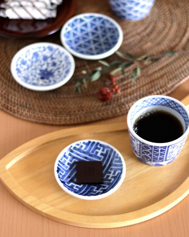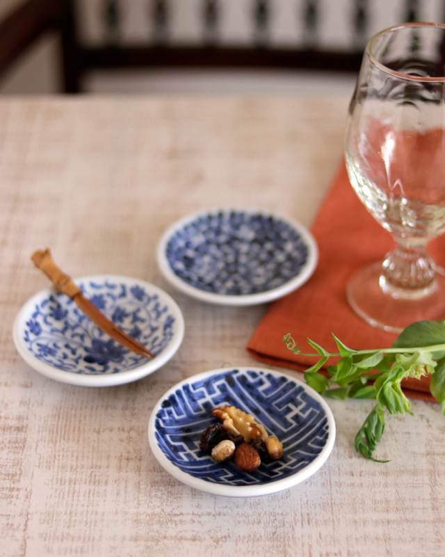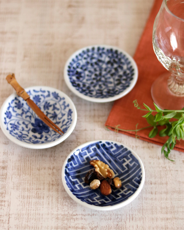 ![]() 直径8.5cmくらいの小さな豆皿。料理が美しく映える味わいある絵付けが魅力的。 ![]() うつわの高さは1.8cmくらい。深さは1.5cmくらいとなります。 ![]() 古くから愛される伝統文様「網代(あじろ)」。 田中貴美子さんらしい丁寧で力強い筆使いで描かれています。 ![]() 田中貴美子さんの「貴」の文字。高台の直径は5cmくらいです。 ![]() うつわの裏側には藍色のラインが引かれています。 ![]() 絵付けの濃さや筆使いなど、ひとつひとつ個性を感じる手描きらしい違いがあります。 直径や高さなども手仕事らしく若干の違いがあります。 ![]() 5枚重ねると5.5cmくらいの高さ。手づくりのため、直径や高さなどに若干の違いがございます。 | ![]() 中心に向かって深さが増すかたちですのでお刺身などの醤油を入れる小皿としても重宝。 脇役となるうつわでありながら食卓を上品に引き立ててくれます。 ![]() お酒の時におつまみを盛り付けるだけで特別な雰囲気に。小さくても存在感ある小皿です。 ![]() お茶のひとときにチョコレートや和菓子の小皿としても素敵。 ぽってりとした小皿ですので気兼ねなく色々な使い方を楽しむことができます。 ![]() 手描きならではの奥深さを感じる絵付け。 ![]() これくらいの大きさ。砥部焼らしく少し厚手の小皿です。 ![]() はがきと比べて。 |
